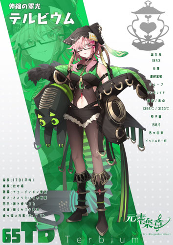 ネット用語(死語)を駆使した独特な喋り方をするが同い年の同居人テルビウムにはあまり伝わっていないようで、度々“マジレス”を返されている。