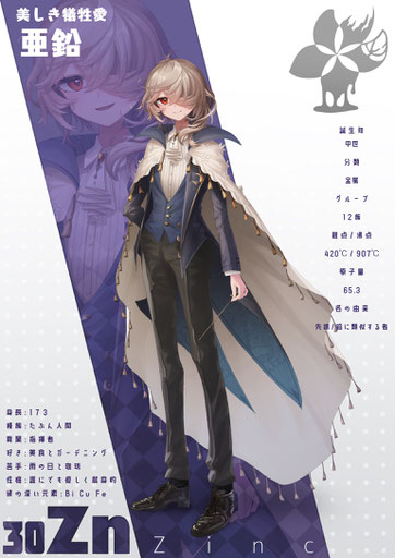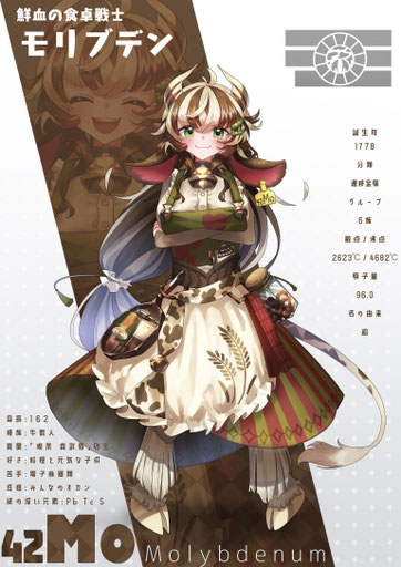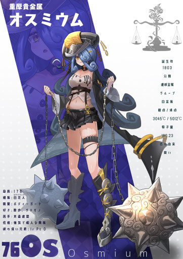 責任者ではあるが自身は土地から動こうとせず、外交は秘書のストロンチウムや友人のバリウムに任せている。