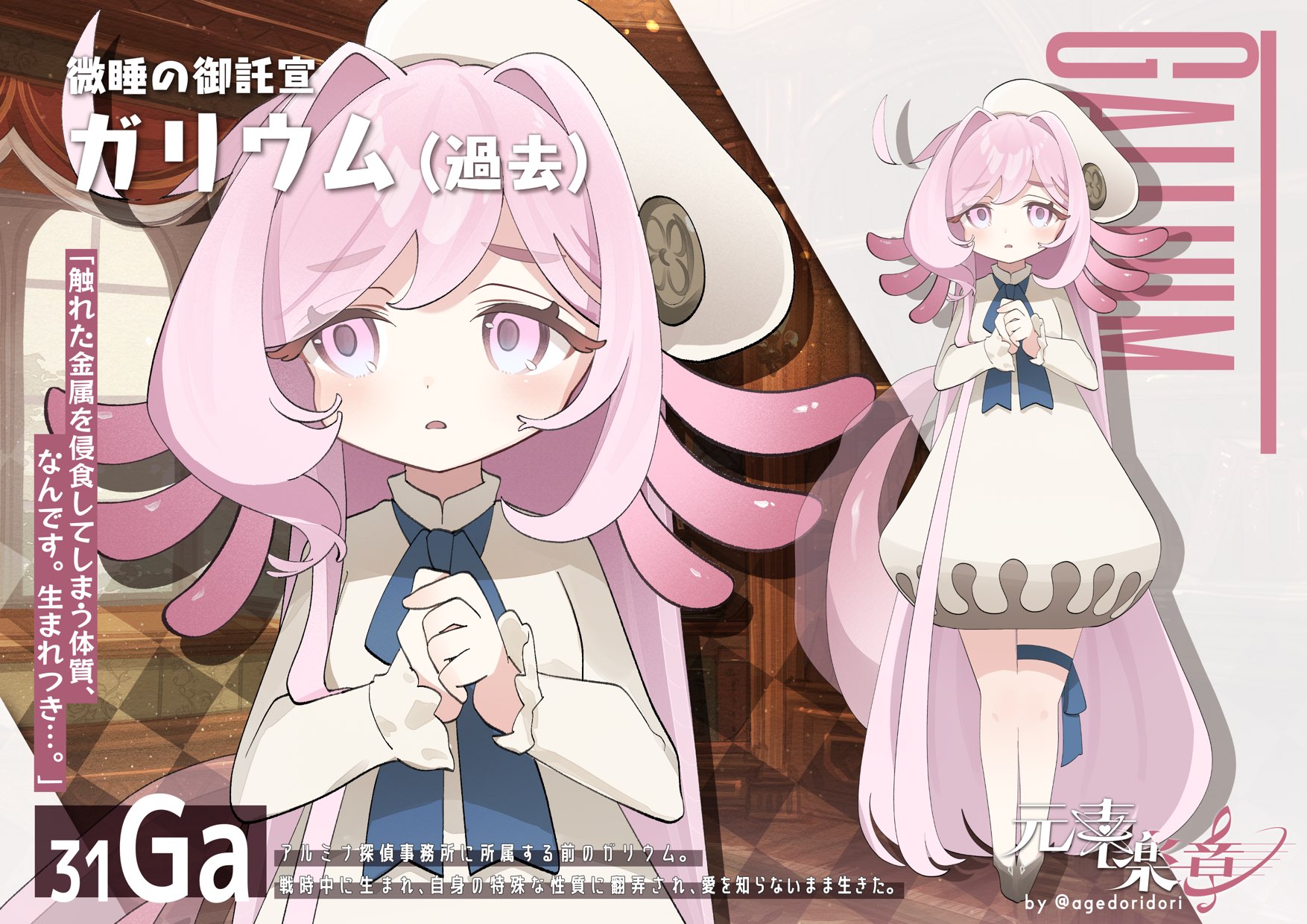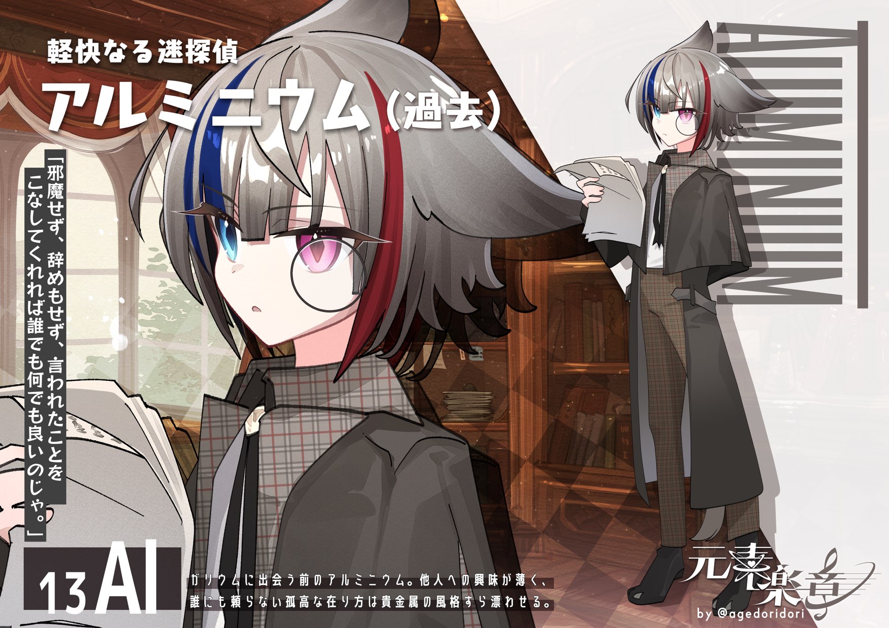泉の一軒家に住まう失踪しがちな放浪の人形使い。動くものを追いかける不思議な人形を扱っており主人の居場所は人形に聞けばわかるかもしれない。本人は物静かな性格で、周りの元素とは一風変わった儚い雰囲気を纏っている。また、無類のファンタジー小説愛好家であり架空の人物「ポリニウム」「イルメニウム」「デビウム」「ニッポニウム」等のキャラクターを崇拝している