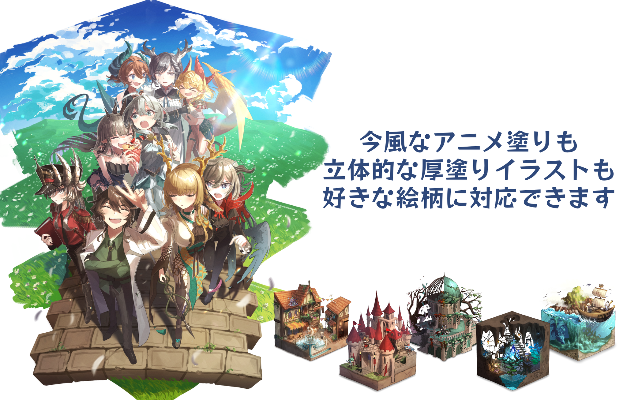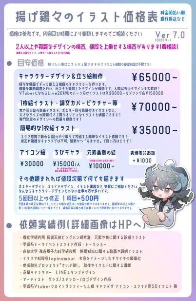 如果是包含2个以上角色的集合插画等制作难度高、耗时较长的插画,价格可能会上调。