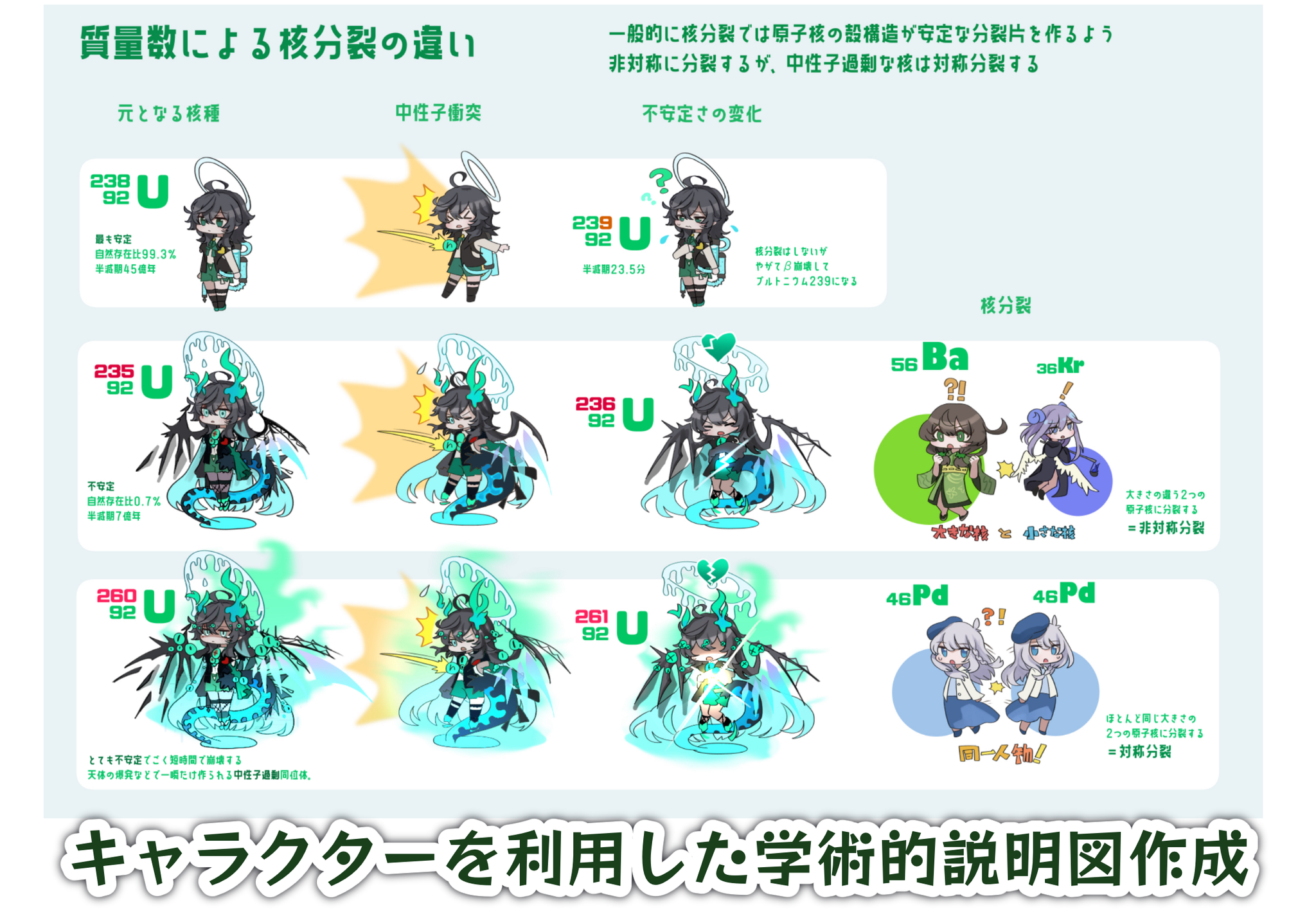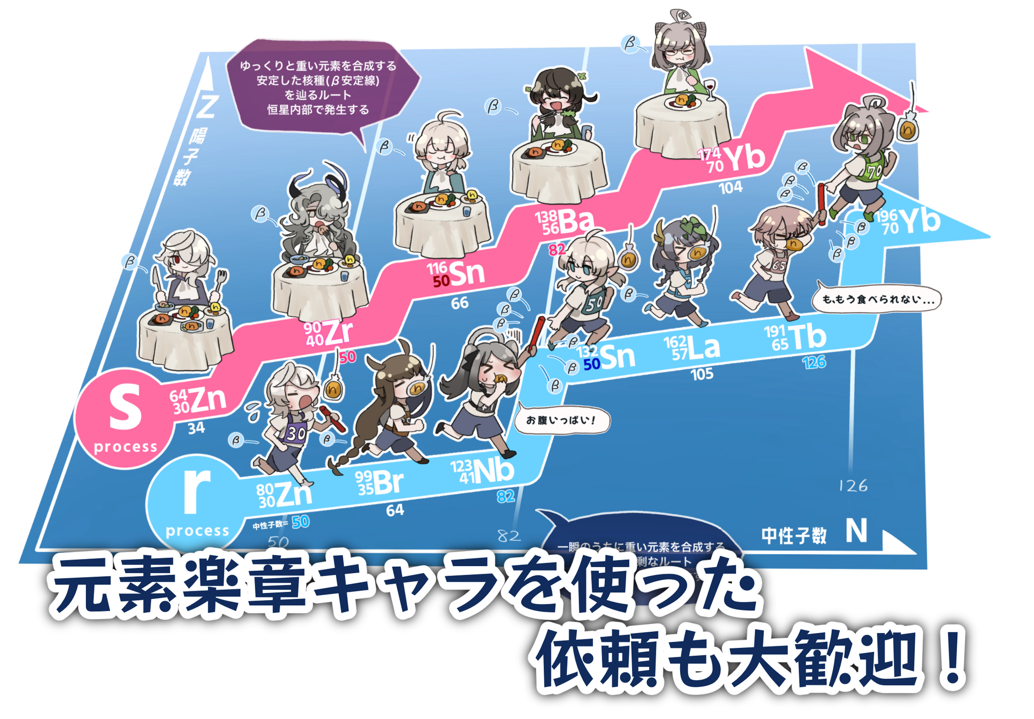 理化学研究所 長瀧天体ビッグバン研究室 元素や核に関する説明イラスト(HPにサンプルあり)