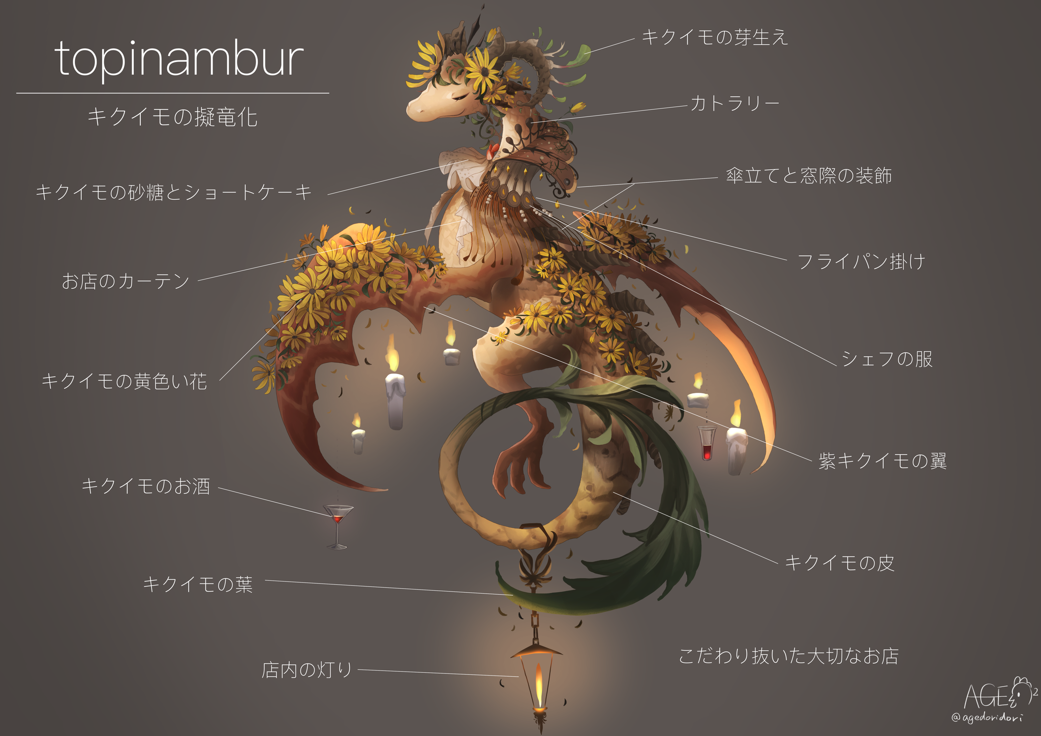 イタリア料理店topinambur お店をイメージしたキクイモの擬竜化