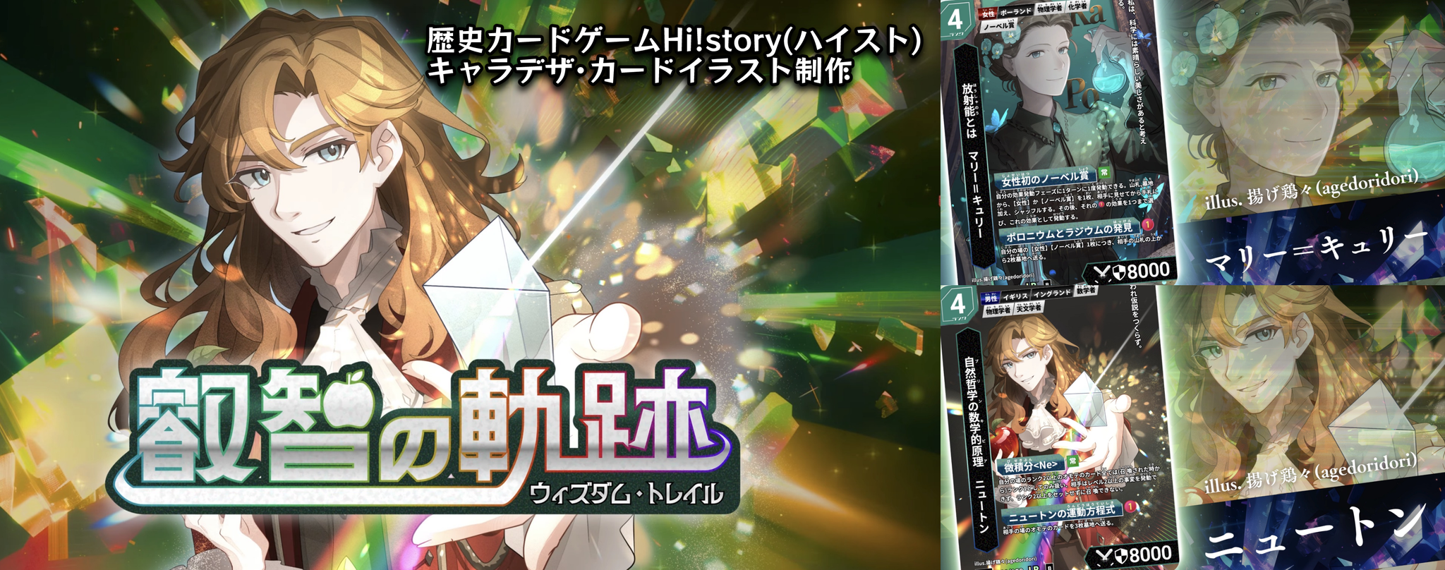 歴史カードゲーム『Hi!story』学者編「ニュートン」「マリー=キュリー」「メンデレーエフ」キャラクター・カードデザイン