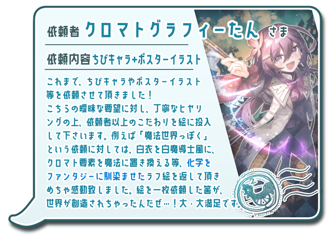 另外,关于“元素乐章”相关的插画委托,作者或许可以大幅度打折。(因为是作者自己很想画的主题)请务必考虑。