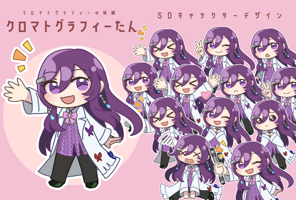 学術系Vtuberクロマトグラフィーたん様 キャラクターデザイン アイコン・スライド用SDキャラクターイラスト作成